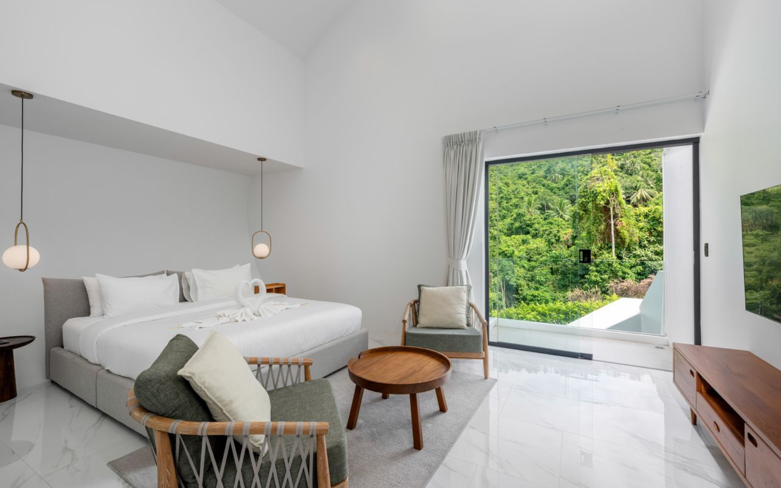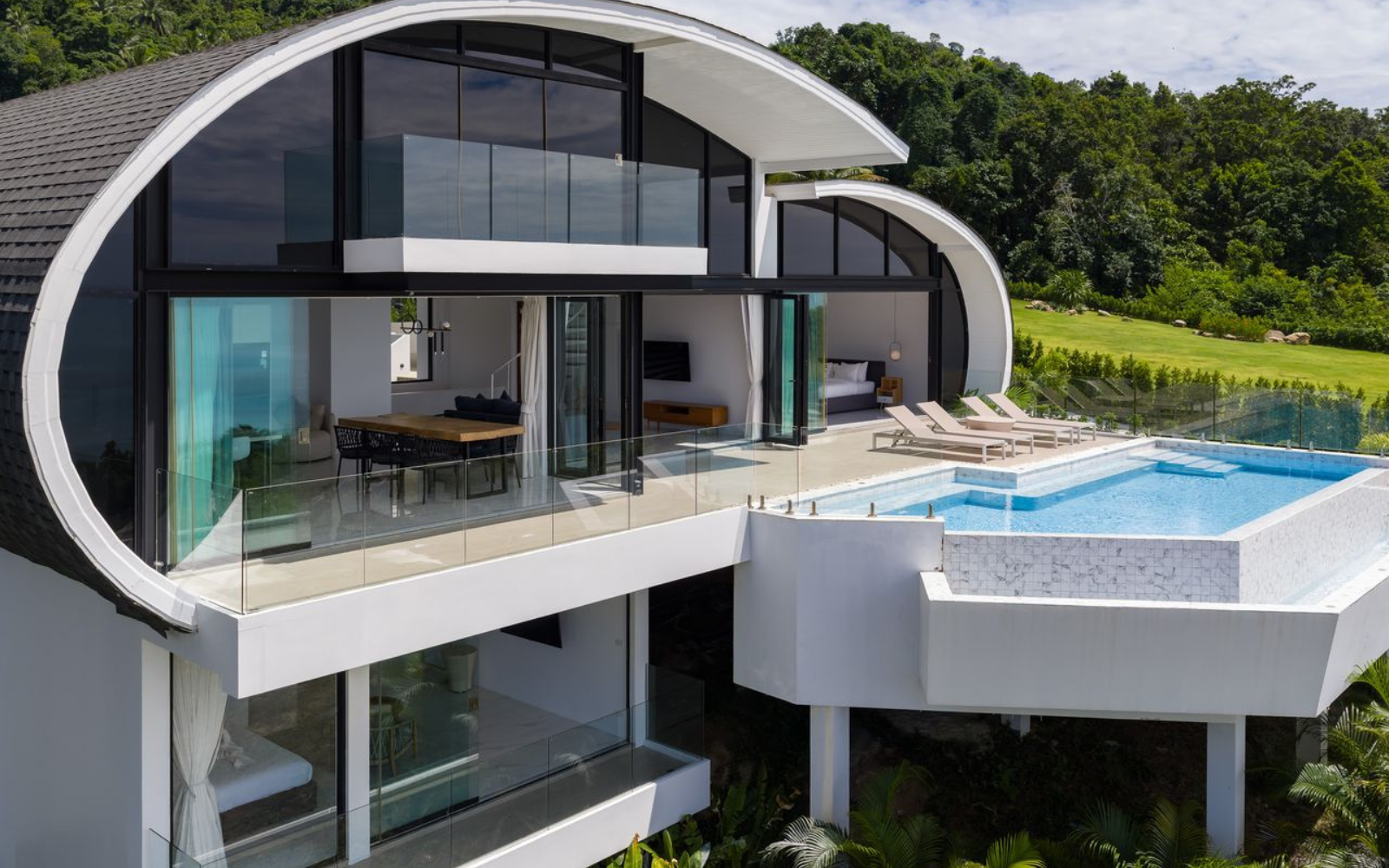 Lux Neo is a luxury villa that comes with a simple contemporary style decoration. It is located on a hill in a prime location near Chaweng Beach and surrounded by a lush green forest to allow you to experience the magnificent view from the balcony. The project is close to tourist attractions and other amenities, whether it is Lamai Beach, Hin Ta Hin Yai, Tesco Lotus Samui, Makro Samui, and only 4 kilometers from the front of Chaweng Beach.
