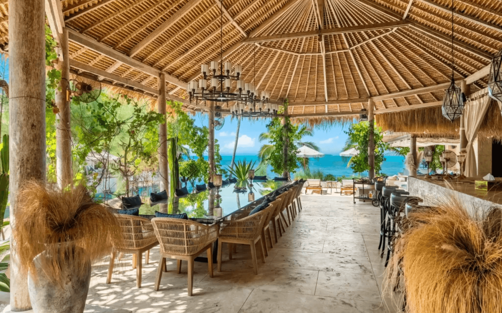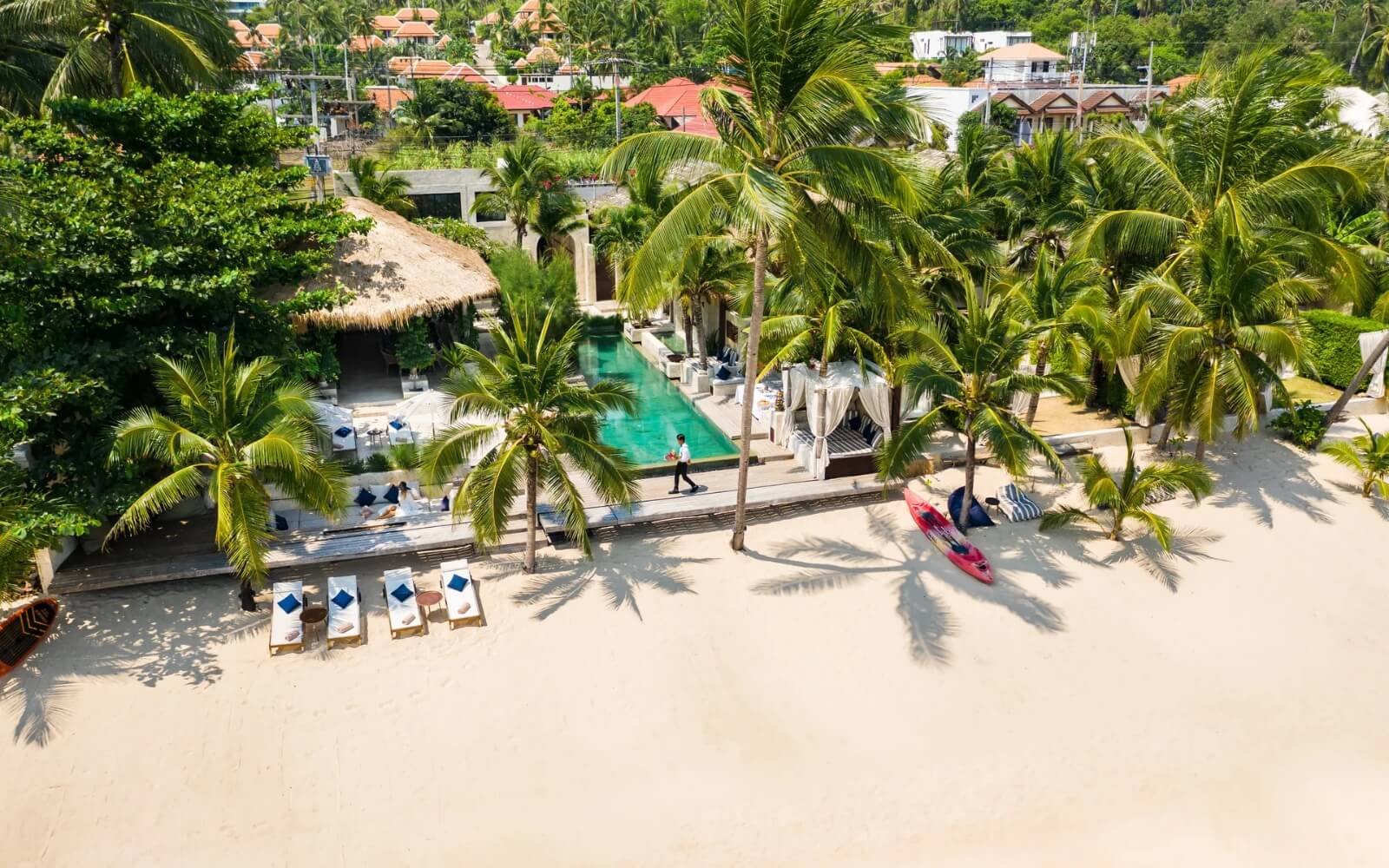 Located in the highly desirable area of Samui, our exclusive property on Bangrak Beach exceeds all expectations of a simple luxury property. With its privileged location by the sea, enjoy a breathtaking view of the ocean and the surrounding islands, creating an atmosphere of absolute serenity. Perfect for families, friends and special events, its breathtaking setting, elegant design and authentic finish guarantee an unforgettable lifetime experience. Welcome to our exclusive property, extending over 2000 m2 and enjoying a 60-meter seafront. Located in the golden triangle of Koh Samui, we are happy to welcome you and take pride in providing you with an unforgettable stay experience with 5-star hotel service.