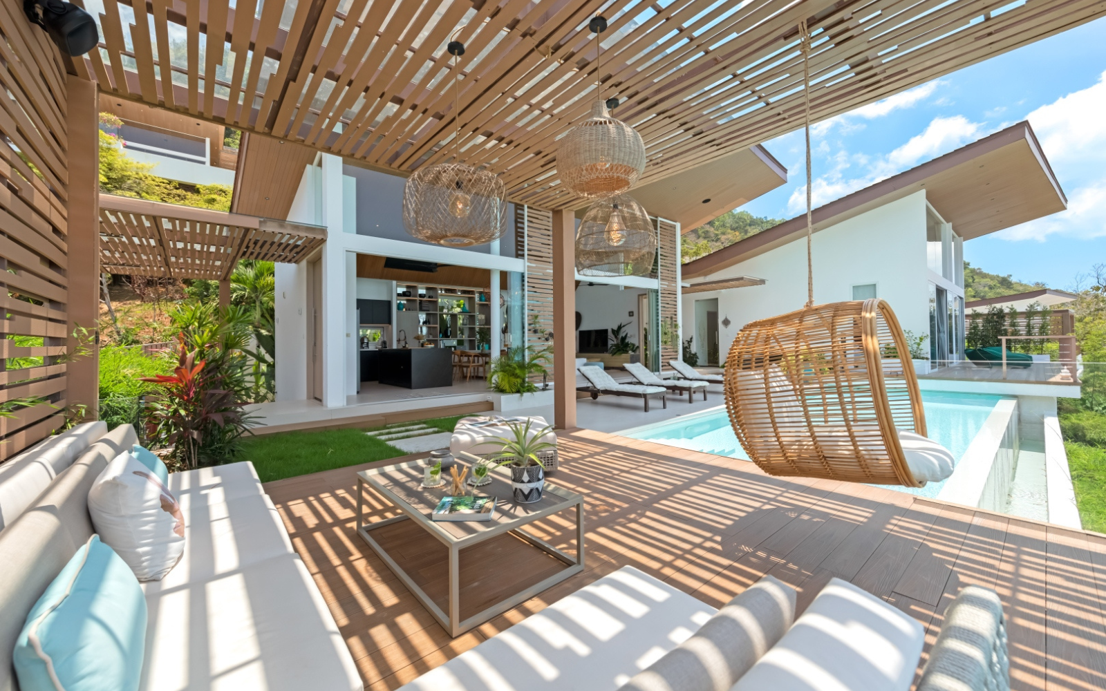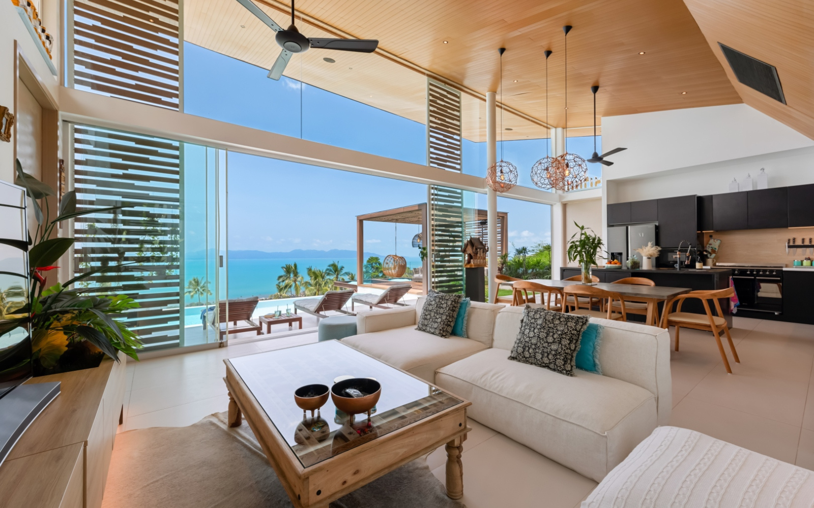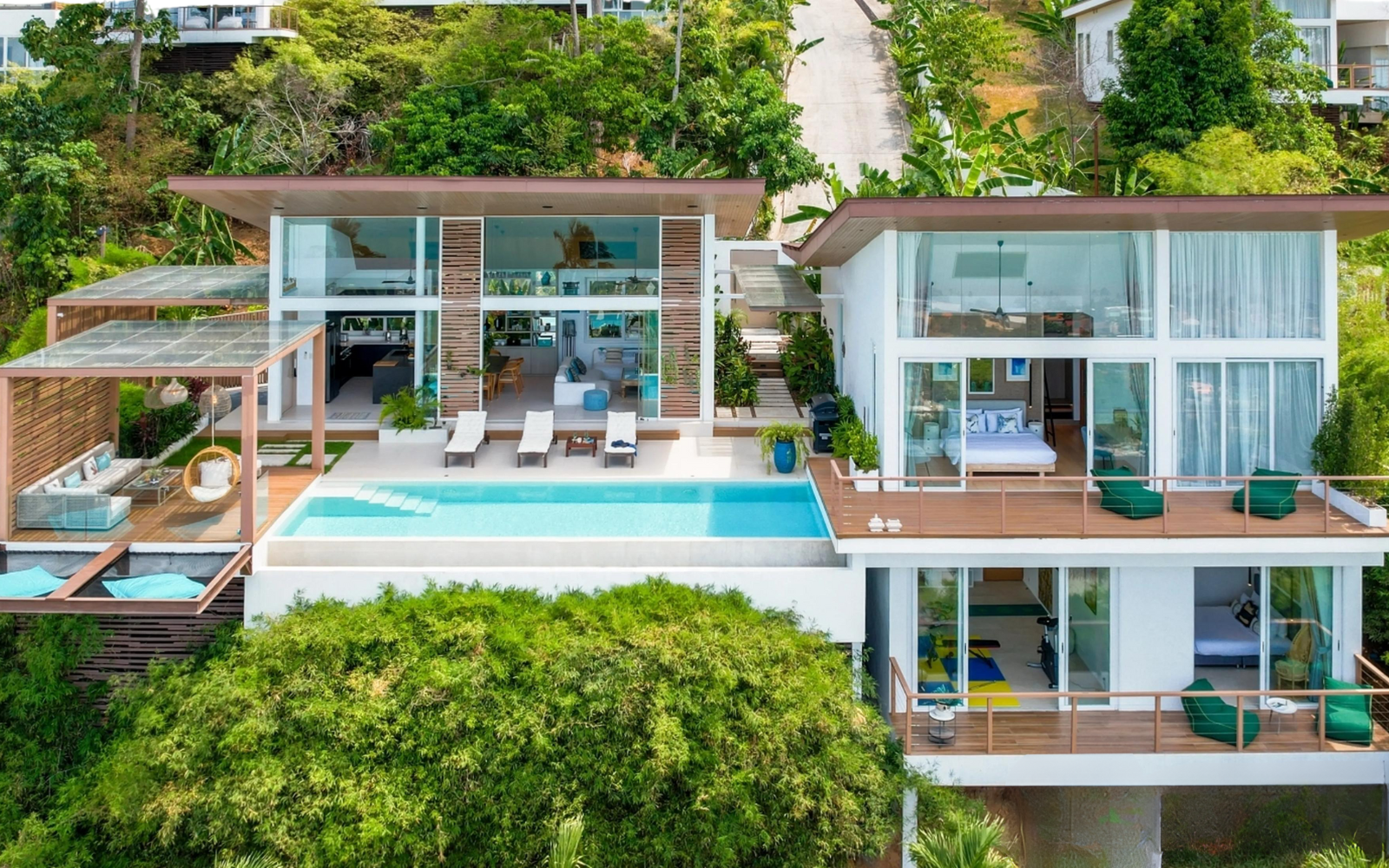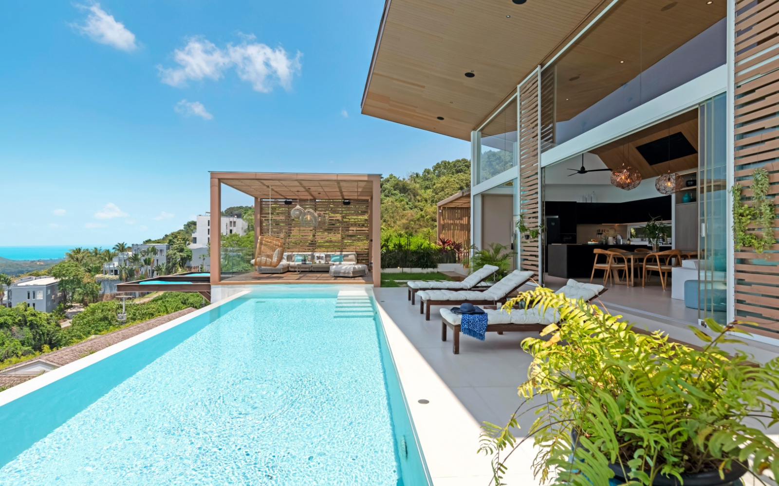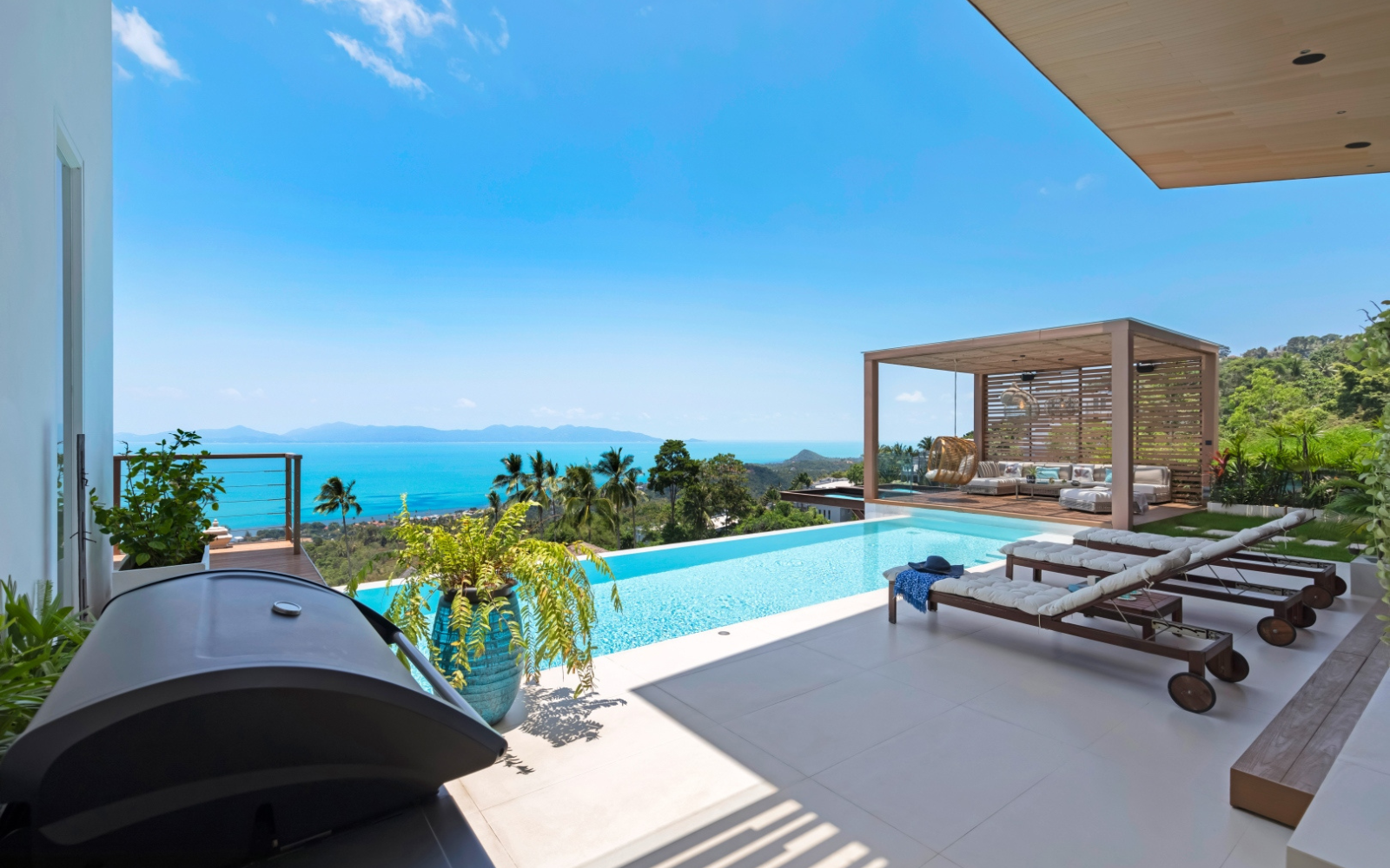 This property is a 350 SqM house with 4 bedrooms and 4 bathrooms that is available for sale. It is part of the Pacific Palisade project in Maenam, Surat Thani. You can buy this house for a base price of ฿33,500,000 (฿95,714/SqM). Luxury Living at Pacific Palisade Residence. Discover a unique blend of tropical serenity and modern luxury at Pacific Palisade Residence, a stunning villa with breathtaking 180° ocean views, just 5 minutes from the pristine Bang Po Beach.