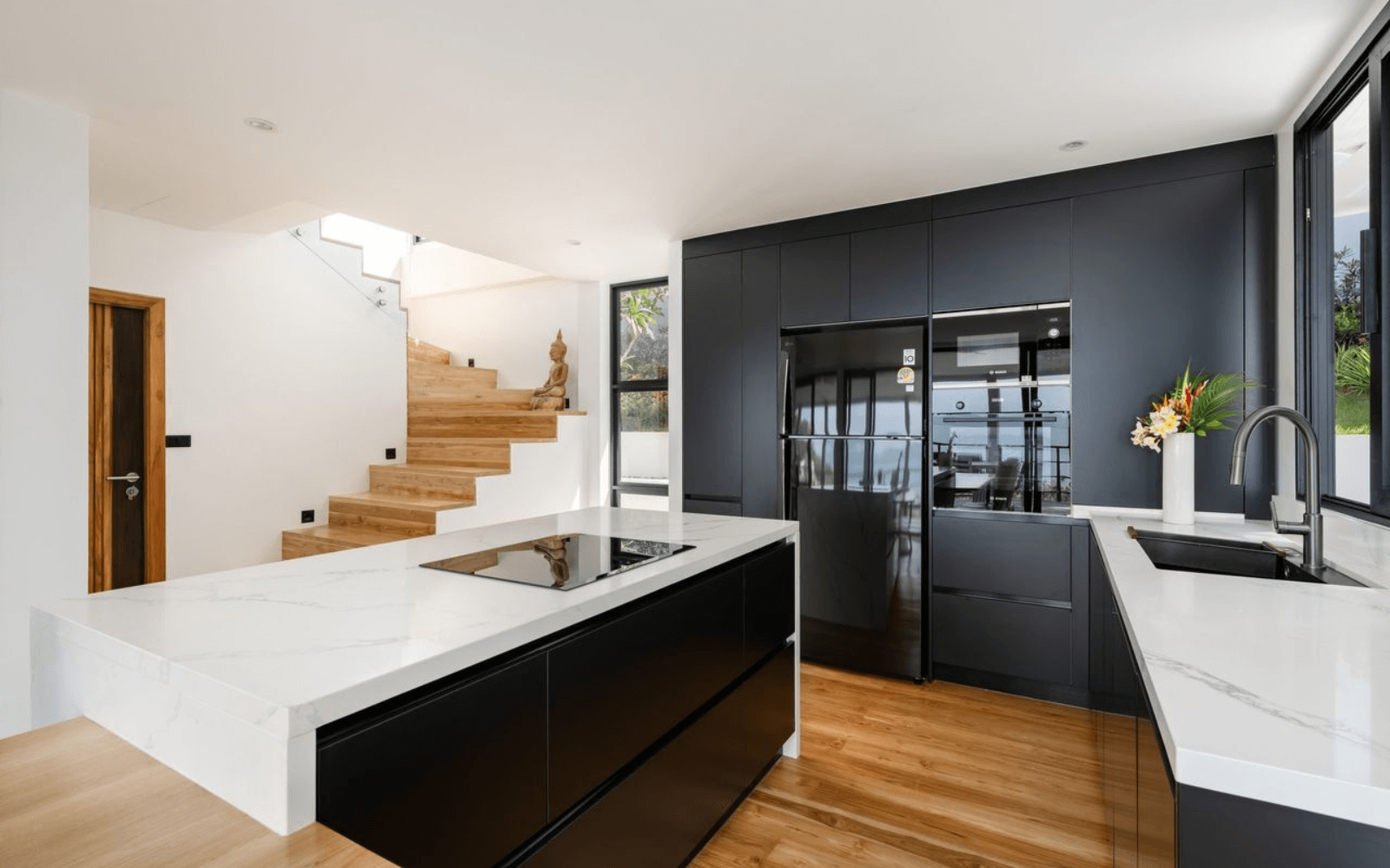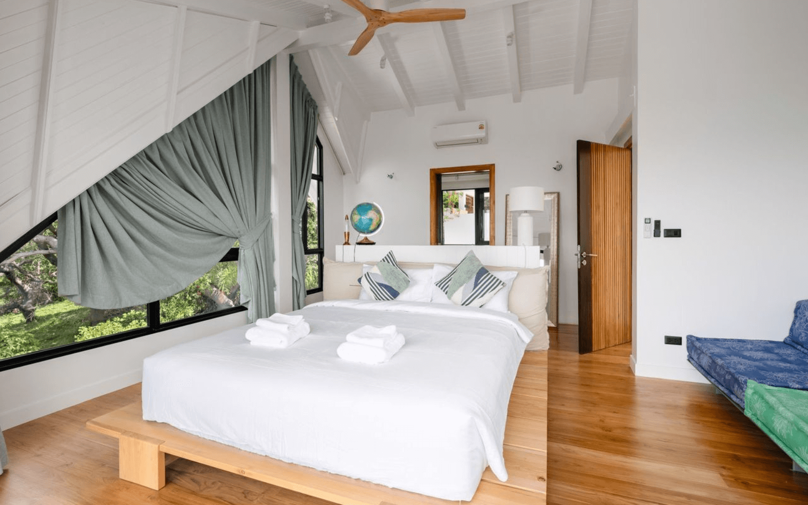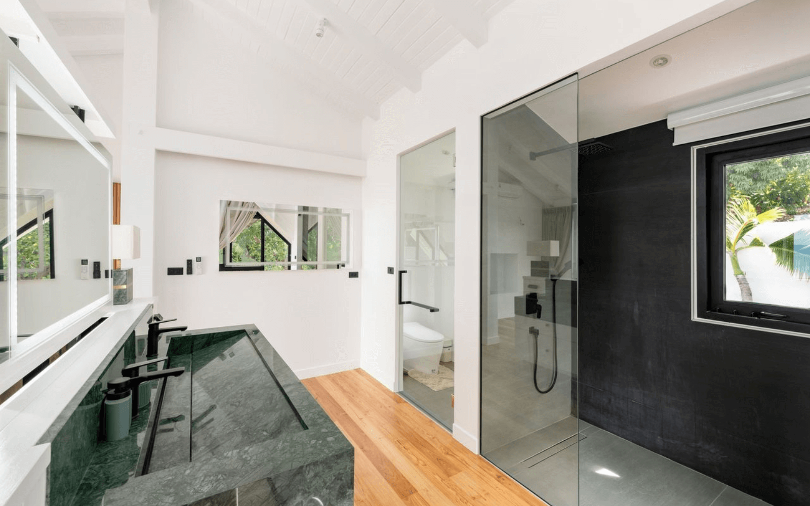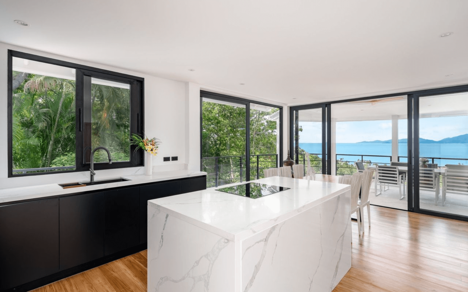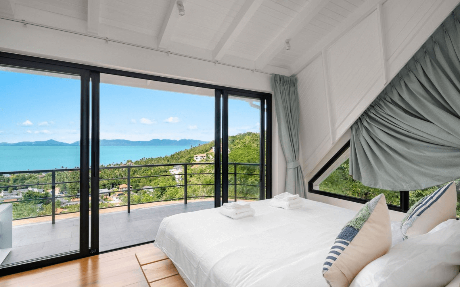 The residence features four elegant en-suite bedrooms, each offering privacy, comfort, and breathtaking ocean vistas.