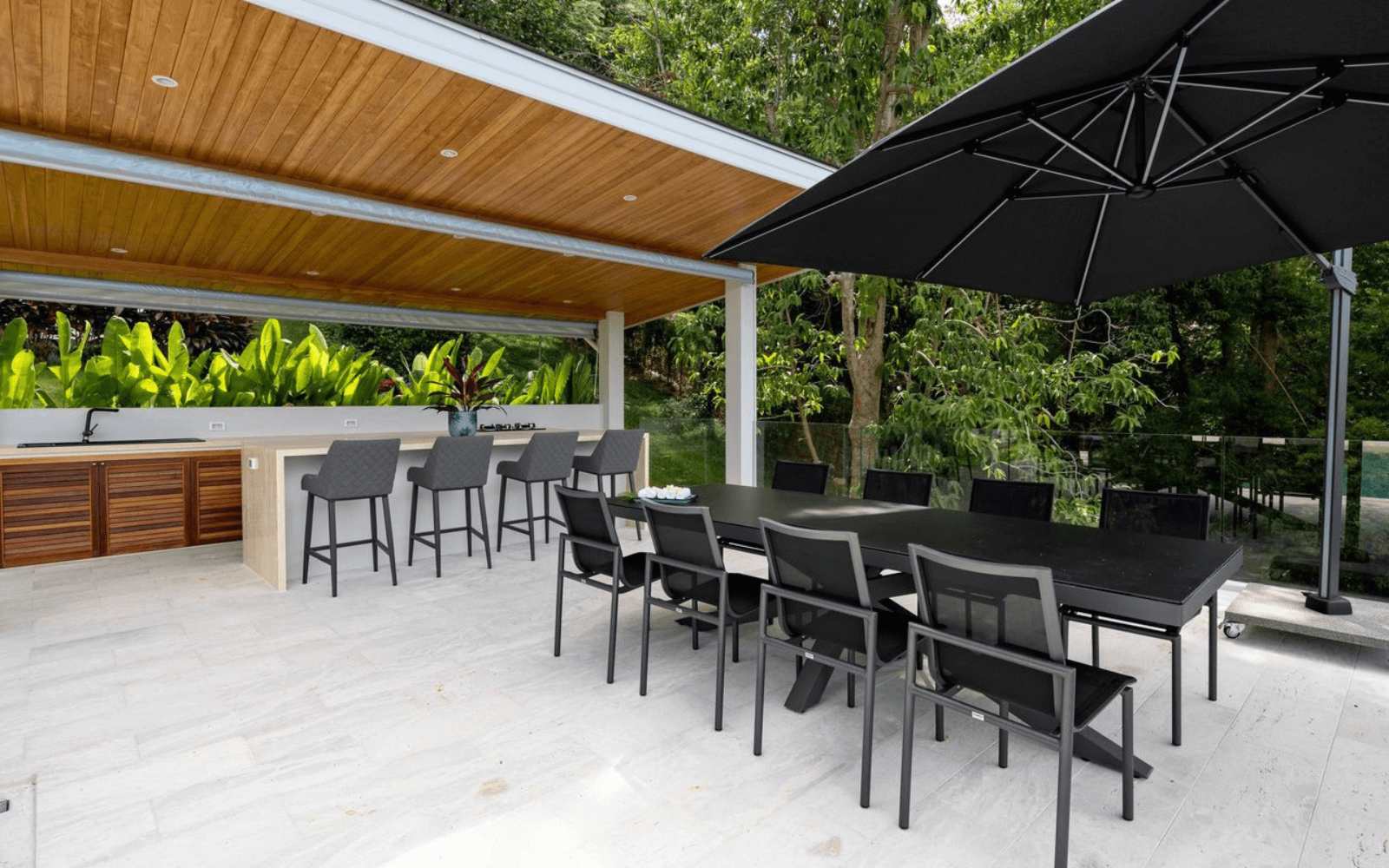 A dedicated 40 sqm private gym or executive office, fully open to the ocean, complements the lifestyle offering. The pool house with kitchen and wine cellar has been designed for intimate gatherings and discreet entertaining.